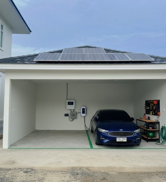 On-Grid → ผลิตไฟใช้กับบ้าน + ชาร์จรถ EV
